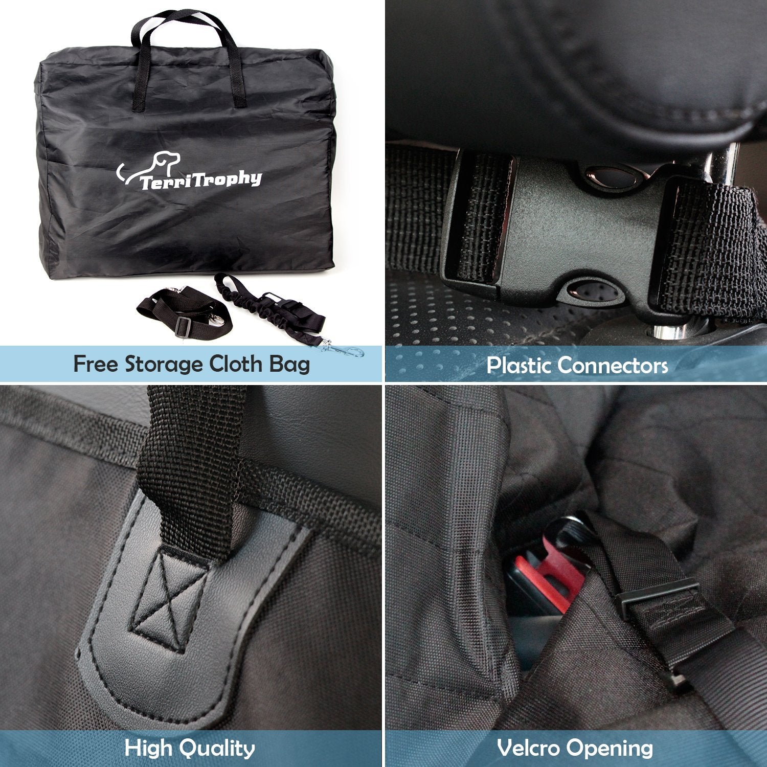 ✔️WATERPROOF & NON-SLIP — TerriTrophy Pet Car Seat Cover, made from heavy-duty oxford fabric and comfortable PP cotton mat, water-resistant, non-slip and durable.