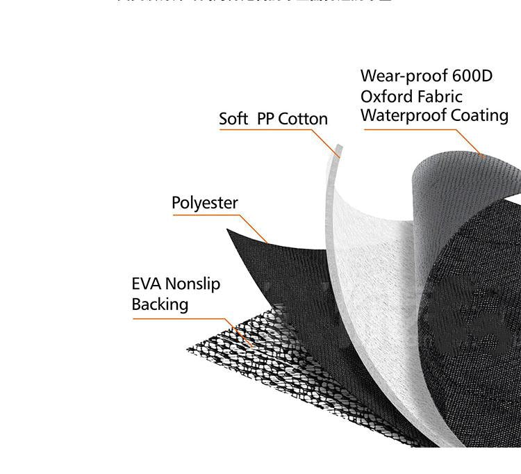 Material: Durable 600D oxford fabric, 210D slip-proof net, and PP cotton mat